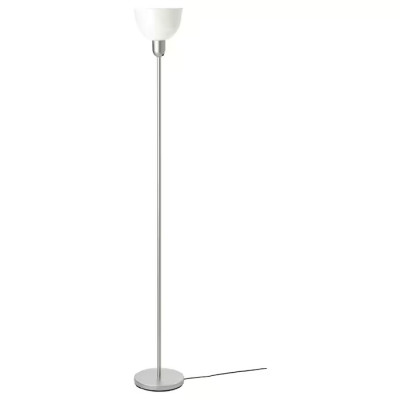 اباژور ایستاده ایکیا سری HEKTOGRAM با شید سفید وبراقی که دارد نور متعادل رو به بالایی را ارائه می کند.