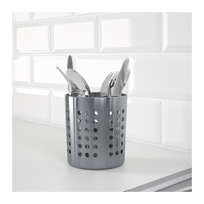 بعد از شستن و خشک کردن قاشق و چنگالها برای جلوگیری از آلوده شدن و تماس با سطوح مختلف باید یک جا قاشقی مناسب و کاربردی داشته باشید. جا قاشقی ایکیا مدل ORDNING برای قرار دادن روی کابینت، داخل کابینت و روی میز طراحی شده است. این محصول برای نگهداری و نظمدهی مورد استفاده قرار میگیرد. دارای بدنهای از جنس فلز بوده و از مقاومت بالایی در برابر ضربه برخوردار است. با داشتن پایهای تخت به راحتی بر روی سطوح قرار میگیرد. دارای قطر 12 سانتیمتری و ارتفاع 13.5 سانتیمتری برای نگهداری قاشق و چنگال مناسب است. این جا قاشقی با طراحی زیبا و کیفیت ساخت خوبی که دارد فضای آشپزخانه را نیز متفاوت خواهد ساخت.