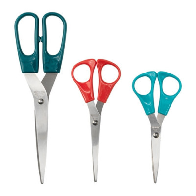 قیچی سه عددی ایکیا مدل TROJK وسیله ای کارآمد در آشپزخانه است. با استفاده از قیچی آشپزخانه میتوان نان، سبزی، ساقه کرفس و گوشت مرغ را برش زد که البته بهتر است برای گوشت و مرغ قیچی مخصوصی برای فقط همین کار در نظر گرفته شود. جنس دستهها از پلاستیک پلی پروپیلن و جنس تیغه از استیل است.