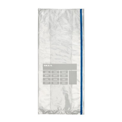 برای نگهداری میوه و سبزیجاتی که ممکن است زود خراب شوند یا بستهبندی انواع گوشت و ماهی، استفاده از کیسه فریزر مرسوم است، اما نیاز به گرهزدن کار را سخت کرده و بعد از یخزدن، بیرونآوردن محتویات از داخل کیسه را با مشکل روبهرو میکند. کیسهی پلاستیکی و زیپدار برند FORNY BAR ایکیا میتواند جایگزین مناسبی برای کیسه فریزرهای معمولی باشد. این کیسه از مواد پلیآمید و پلی اتیلن بهداشتی با تکنولوژی منحصربهفرد ساخته شده است. مزیت دیگر و اصلی این کیسههای زیپدار قابلیت ایجاد محیط ایزوله است که از ورود اکسیژن و بوی سایر موادغذایی به داخل کیسه و همینطور انتشار بوی مادهی داخل کیسه به بیرون جلوگیری میکند. با استفاده از این کیسه میتوان برای کمتر اشغالشدن فضای قفسههای فریزر، گوشت را به صورت کتابی فریز کرد و نیازی نیست که سر کیسه را گره بزنید؛ با این روش از به هم ریختن فرم گوشت جلوگیری میکنید. کیسه بستهی 50 عددی با حجم 1 لیتری عرضه شده است.