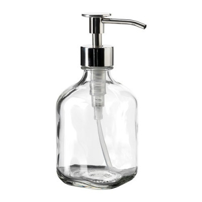 جا مایع صابون شیشه ای ایکیا دارای پمپ استینلس استیل و شیشه بدون حباب  حجم: 350 میلی لیتر(سی سی)