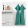 حوله ایکیا مدل VAGSJON رنگ فیروزه ای یک انتخاب عالی است. هر دو طرف حوله پرز دارد که آب را به خوبی جذب کند. الیاف آن نیز پنبهای است و نرمی و لطافت مناسبی برای خشک کردن دست و صورت دارد. مدل VAGSJON ابعاد تقریبی 40 × 70 سانتیمتری دارد و تا دمای 60 درجه سانتیگراد قابل شستوشو است. بعد از شستوشو نیز میتوان آن را با حرارت ملایم اتو کرد. دو طرف این حوله دوخته شده که از ریشریش شدن آن جلوگیری کند. حوله دستی ایکیا قابل استفاده در سرویس بهداشتی یا آشپزخانه است تا بعد از شستن ظروف یا نظافت آشپزخانه، دستهایتان را به راحتی خشک کنید.