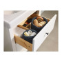 یکی از کارهای سخت در مرتب کردن اتاقها، نظم دادن به لوازم خرده ریز است. این لوازم را نه میتوان به درستی آویزان کرد، نه تا کرد و به هر حال فضای نامناسبی را اشغال میسازند. داشتن باکس مناسب برای نظم دادن به وسایل یک راه حل است. یکی از این باکس ها ست بافت دو تایی NORDRANA است. در این باکس میتوان برس، شانه، کلیپس، لوازم آرایش و . . . را قرار داده و در صورت نیاز به راحتی در دسترس خواهند بود بدون آنکه فضایی بیشتر اشغال کرده و یا فضا بهمریخته شود. این ست بافت را در هم جای منزل، حتی حمام می توان استفاده نمود. قابل شستشو در ماشین لباسشویی است. اگر به دنبال یک راهحل سریع، آسان و زیبا برای نظم دادن به کمد و کشوهایتان هستید این باکس بهترین است.