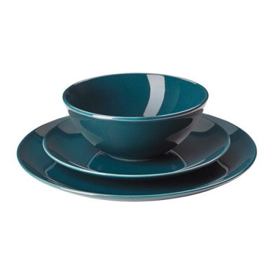 اگر به دنبال یک سرویس غذاخوری یکدست آبی تیره هستید که به تنهایی و یا در کنار ظروف رنگی دیگر بتوانید از آن استفاده کنید، سرویس 18 پارچه برند ایکیا میتواند گزینهای ایدهآل باشد. این سرویس مناسب 6 نفر است که شامل شش بشقاب غذاخوری با قطر 27 سانتیمتر، شش پیاله با قطر 16 سانتیمتر، شش پیشدستی با قطر 21 سانتیمتر است. جنس این سرویس سرامیک است و میتوان آن را داخل مایکروویو ماشین ظرفشویی قرار داد. این سرویس کاملا آبی است به همین دلیل برای استفاده در کنار سرویسهایی که شلوغ و طرحدار هستند مناسب است.