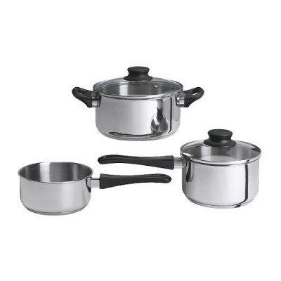 سرویس پخت و پز 5 پارچه ایکیا مدل ANNONS از استیل ضدزنگ ساخته شده و برای افرادی که در حال تکمیل جهیزیه یا سرویس آشپزخانه خود هستند، انتخابی ایده آل است. این سرویس،دو شیر جوش با ابعاد متفاوت و یک قابلمه همراه با در شیشهای دارد. دستهها و قپهها، مشکی رنگ هستند که هماهنگی خاصی با رنگ استیل دارند. روی در یک سوپاپ برای خروج بخار، تعبیه شده است. دستهها در برابر حرارت مقاوم بوده و داغ نمیشوند. مدل ANNONS دارای بدنهای مقاوم است و رنگ آن بعد از گذشت زمان تغییر نمیکند. اقلام این سرویس دارای کف کپسولی سه لایه هستند که باعث پخش یکنواخت حرارت در تمام ظرف میشوند.