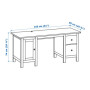 میز تحریر ایکیا مدل HEMNES دارای جنسی از چوب کاج است که با طراحی زیبا و وزن سبک بهترین گزینه برای اتاق فرزند یا اتاق کار شما خواهد بود. داشتن یک میز تحریر یا میز کامپیوتر استاندارد و مناسب از ملزومات کار است. اگر در حین کار از لوازم غیراستاندارد استفاده کنید باعث آسیب‌های جدی به شما خواهد شد.این میز سه قفسه دارد که که می‌توانید لوازم خود را در آن قرار دهید. پایه‌های چوبی میز مقاومت خوبی را در برابر فشار و ضربه دارد و دوام آن را بیشتر خواهد کرد. وزن بسیار سبکی دارد که حمل آن شما را دچار دردسر نمی‌کند.