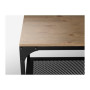 ميز جلو مبلي ایکیا مدل FJALLBO، گزينهي مناسبي به منظور ايجاد فضايي هارمونيك از نظر بصري است. جنس پایه های میز از فولاد بوده که دارای استحكام در برابر فشارهاي ناشي از وزن است. ارتفاع ميز 46 سانتيمتر و براي قرار گرفتن در مبلمان نشيمن يا اتاق تلويزيون مناسب است. كاربرد اصلي ميزهاي جلومبلي، ايجاد صميميت و سهولت پذيرايي در مجالس ميهماني است.