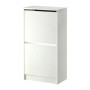 جاكفشي ایکیا مدل BISSA دو طبقهي مجزا دارد و گزينهاي مناسب براي نگهداري از هشت جفت كفش محسوب ميشود، بنابراين اگر تعداد كفشهاي دمدستي خود يا خانوادهتان كمتر از هشت عدد است، اين مدل بهترين انتخاب براي شماست. جاكفشي ايكيا ساده و بدون هيچ نقش و نگاري طراحي شده است تا در صورت قرار دادن آن داخل يا نزديك ورودي خانه، با ساير وسايل هماهنگ شود. نئوپان، پلياستايرن و پلاستيك ازجمله مواد اوليه بهكاررفته در ساخت اين محصول هستند. نئوپان در مقايسه با MDF استحكام و مقاومت بهتري در برابر رطوبت دارد و طول عمر آن بهنسبت خوب است، بنابراين تا چندين سال ميتوانيد از اين جاكفشي ساده و زيبا براي نگهداري از كفشهايتان استفاده كنيد. درهاي اكثر جاكفشيهاي موجود در بازار از كنار باز ميشوند و بهطورمعمول به فضاي زيادي نياز دارند. جاكفشي دو طبقهي ايكيا داراي دو در است كه بهصورت عمودي و از بالا باز ميشوند، بنابراين با باز و بسته كردن درها، محيط اطرافتان بيشازحد اشغال نخواهد شد. اين مدل دو طبقهي مجزا دارد كه هركدام قابليت نگهداري از چهار كفش را دارند. داخل هر طبقه، يك تخته تعبيه شده است كه با برداشتن آن ميتوان كفشهاي ساق بلند مانند انواع بوت را بهراحتي داخل طبقات جا داد.
